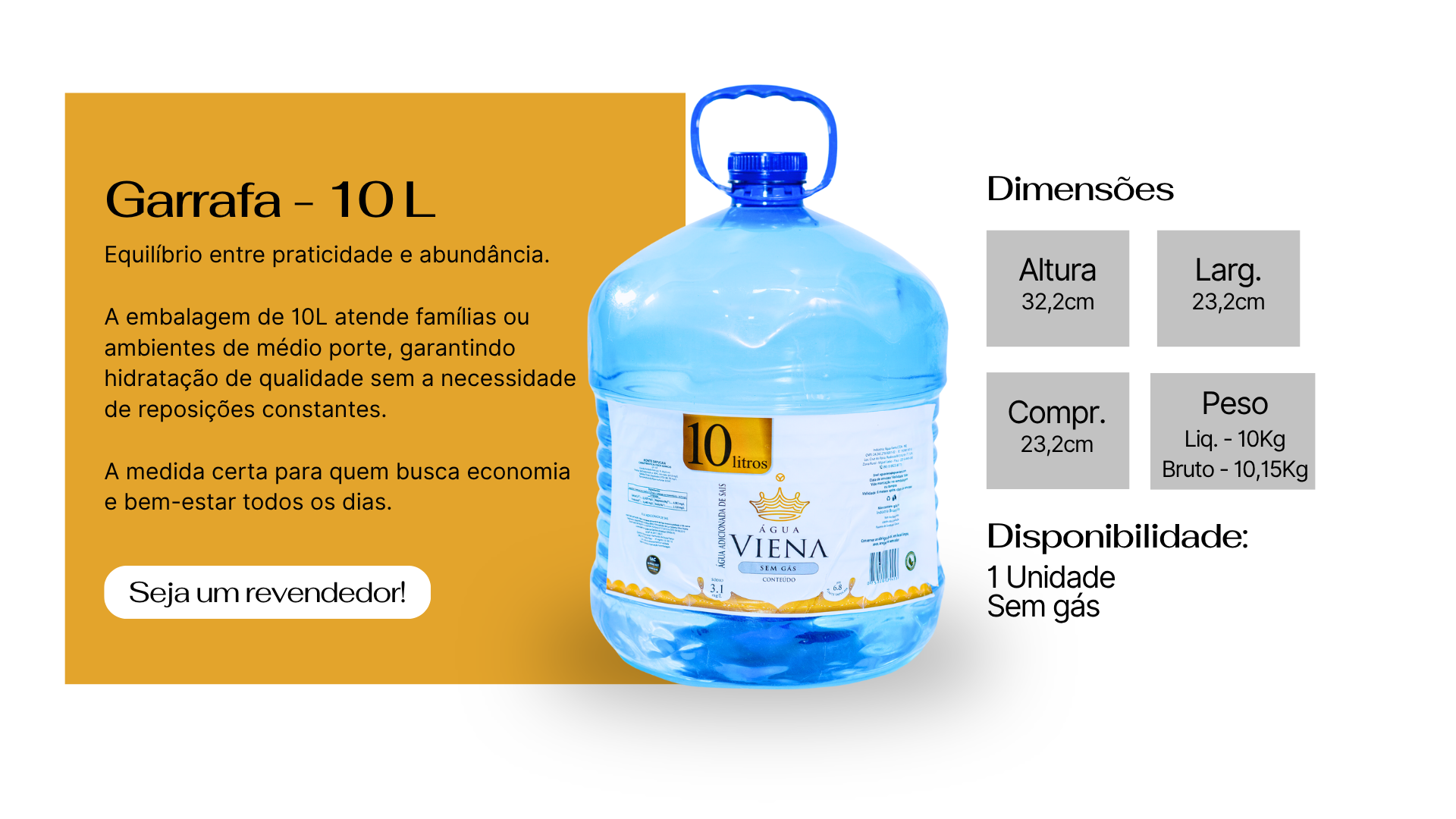 A embalagem de 10L atende famílias ou ambientes de médio porte, garantindo hidratação de qualidade sem a necessidade de reposições constantes.