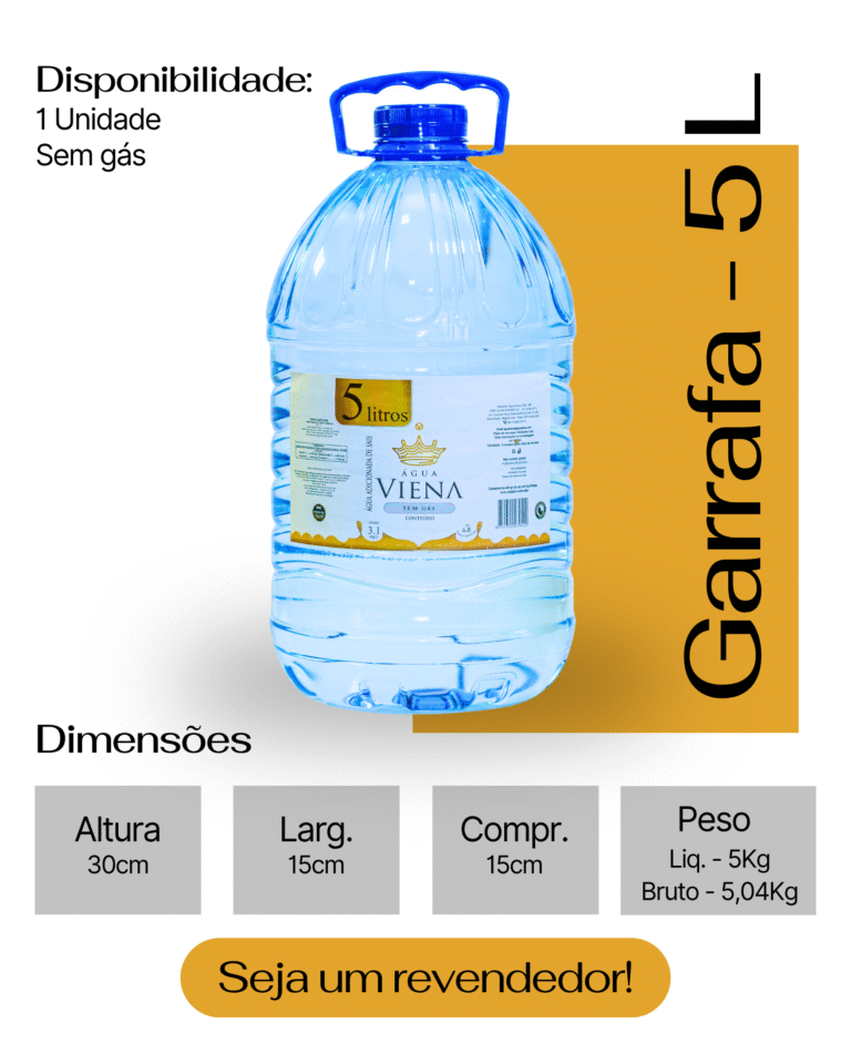 A garrafa de 5L é ideal para o consumo diário em casa, pequenos escritórios ou para manter sempre à mão na geladeira.